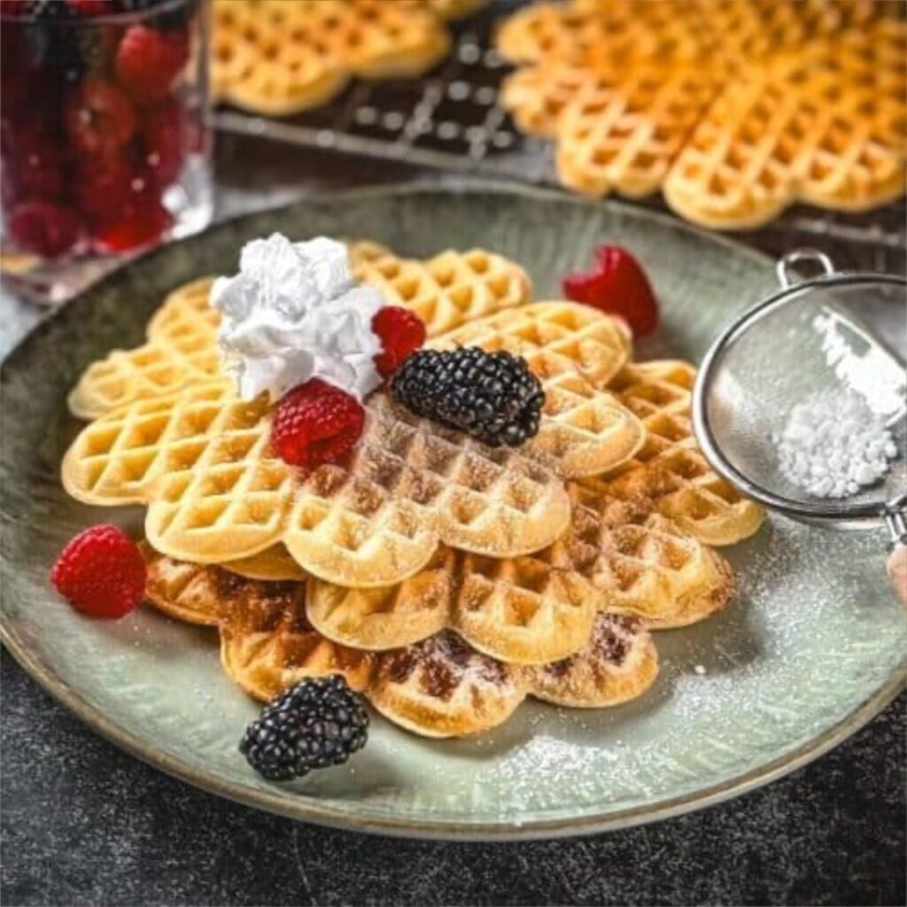 Leckere Waffeln mit bunten Beilagen
